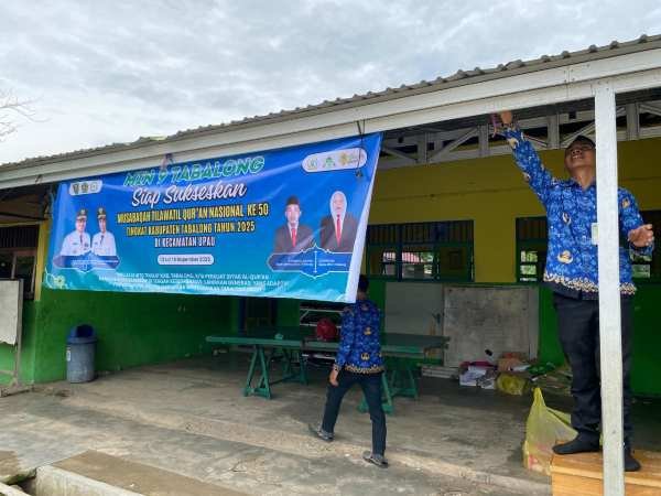 MIN 9 Tabalong - Dalam rangka menyukseskan pelaksanaan Musabaqah Tilawatil Qur’an (MTQ) Nasional ke-50 Tingkat Kabupaten Tabalong tahun 2025, MIN 9 Tabalong turut berpartisipasi dengan memasang spanduk dukungan di lingkungan madrasah. Kegiatan ini menjadi salah satu bentuk nyata partisipasi madrasah dalam mendukung agenda keagamaan tingkat kabupaten yang tahun ini diselenggarakan di Kecamatan Upau. selasa (11/11/25)