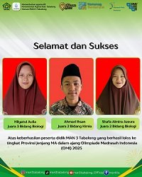 MAN 3 Tabalong - Prestasi membanggakan kembali ditorehkan oleh siswa-siswi Madrasah Aliyah Negeri (MAN) 3 Tabalong dalam ajang Olimpiade Madrasah Indonesia (OMI) 2025 Tingkat Kabupaten Tabalong. (18/9/25)