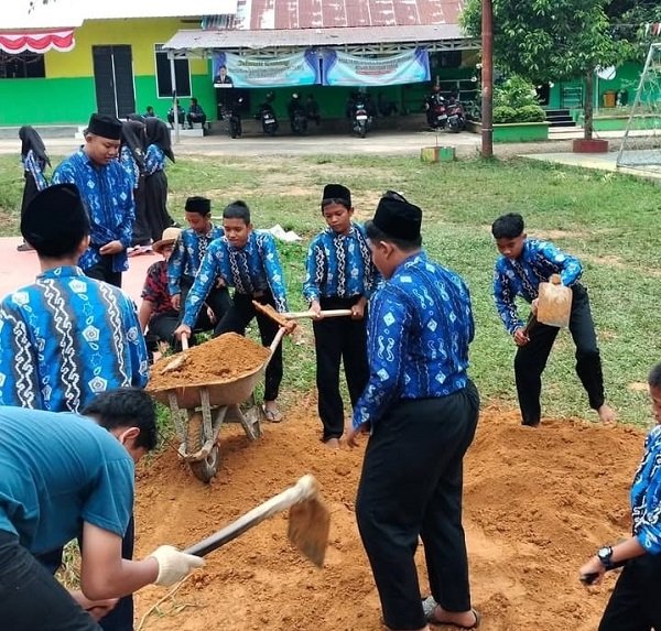 MTs Ar Raudlah Tanta – Siswa Madrasah Tsanawiyah (MTs) Ar Raudlah melaksanakan kegiatan gotong royong pengurukan pondasi bangunan lokal belajar baru. Kegiatan tersebut juga sebagai bagian praktik kerja sama serta meningkatkan kebersamaan dan tanggung jawab terhadap fasilitas bersama di madrasah, Rabu (3/9/25).