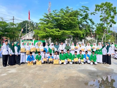 MTsN 4 Tabalong - Sebagai bentuk apresiasi atas semangat dan kreativitas siswa,Pelaksana Tugas (Plt) Kepala Madrasah Tsanawiyah Negeri (MTsN) 4 Tabalong H. Abd. Rahim, S. Ag memberikan hadiah secara langsung kepada para pemenang lomba dalam rangka memeriahkan Hari Ulang Tahun (HUT) ke-80 Republik Indonesia (RI), Senin (25/8/25) dihalaman madrasah.