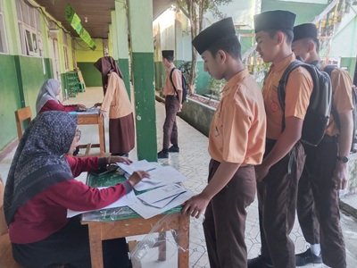 “Hal ini kita lakukan agar tidak terjadi kesalahan dalam penulisan data siswa di E-Ijasah sehingga berdampak pada kelulusan peserta didik”, ujarnya saat memantau wali kelas membagikan surat pernyataan pada siswa kelas IX di halaman madrasah, Jumat (13/06/25).