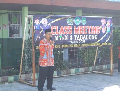 MTsN 4 Tabalong – Kepala Madrasah Tsanawiyah Negeri (MTsN) 4 Tabalong M. Yusuf, S. Pd. I, M. Pd resmi membuka kegiatan Class Meeting tahun 2025 dan menekankan pentingnya sportivitas dan kerjasama antar siswa selama kegiatan berlangsung. pada Rabu (10/12/25) di lapangan madrasah.