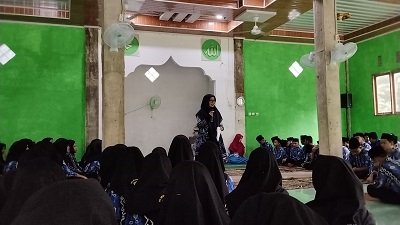 Tanjung (MTs Ar Raudlah Tanta) – Penyuluh agama Islam dari Kantor Urusan Agama (KUA) Tanta Lisnawati, S.Ag memberikan kajian dan penyuluhan dan bimbingan remaja tentang pernikahan dini kepada siswa-siswi Madrasah Tsanawiyah (MTs) Ar Raudlah Tanta bertempat di musalla madrasah, Rabu (21/05/25).