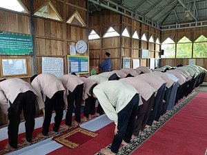 Setelah pembacaan surah-surah tersebut, kegiatan dilanjutkan dengan pelaksanaan Sholat Dhuha dan Sholat Hajat yang dipimpin oleh Wakamad bidang Humas MAN 3 Tabalong, Ahmad Hermansyah Arif Widodo, S. Pd. Dengan keikutsertaan seluruh peserta yang berharap keberkahan dan kemudahan dalam menuntut ilmu.