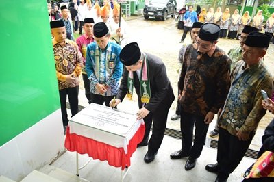 Tanjung (MTsN 4 Tabalong) – Kepala Kantor Wilayah Kementerian Agama Provinsi Kalimantan Selatan Dr. KH. Muhammad Tambrin, M. M, Pd meresmikan Ruang Kelas Baru (RKB) Madrasah Tsanawiyah Negeri (MTsN) 4 Tabalong yang dibangun menggunakan dana Surat Berharga Syariah Negara (SBSN) yang menjadi inovasi pembiayaan untuk pembangunan infrastruktur. Pelaksanaan peresmian berlangsung di halaman MTsN 4 Tabalong, Minggu (01/06/25).