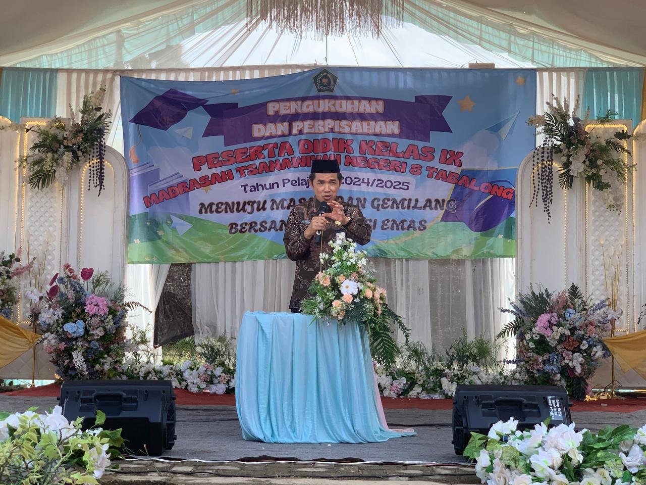 Mengangkat tema "Menuju Masa Depan Gemilang Bersama Generasi Emas", kegiatan berlangsung di halaman MTsN 8 Tabalong dan turut dihadiri oleh Kepala MTsN 8 M. Yusuf, Pengawas Pembina Madrasah, Ketua Komite, para Kepala Madrasah, Kepala KUA, Kepala Puskesmas Pugaan, tenaga pendidik dan kependidikan, para orang tua/wali, serta seluruh siswa dan siswi kelas IX.