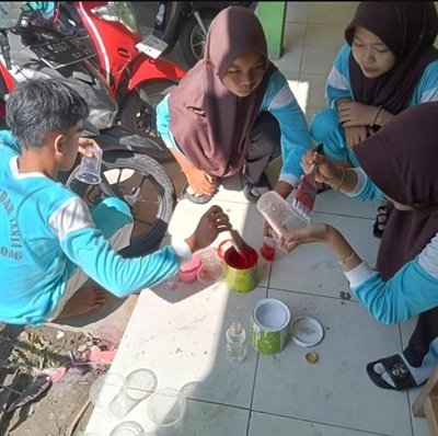 Dengan penuh antusias, para siswa mulai memotong, mengecat, dan menghias gelas plastik sesuai ide masing-masing. Beberapa gelas plastik diubah menjadi pot bunga mini, tempat alat tulis. Hasil karya tersebut kemudian dipasang di sudut-sudut kelas dan teras kelas IXA, menjadikan suasana belajar lebih menarik dan nyaman.