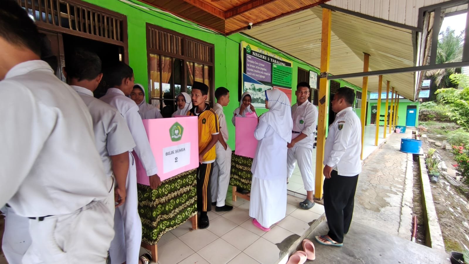 MTsN 5 Tabalong - Menjelang pelaksanaan pesta demokrasi di lingkungan madrasah, Organisasi Siswa Intra Madrasah (OSIM) Madrasah Tsanawiyah Negeri (MTsN) 5 Tabalong bersama tim kesiswaan melaksanakan kegiatan pembuatan bilik suara dan kotak suara pada Selasa (4/11/2025). Kegiatan ini merupakan bagian dari persiapan pemilihan ketua OSIM periode 2025/2026 yang akan dilaksanakan pada Rabu, 5 November 2025.