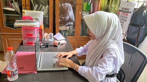 “Tadinya sempat gugup dan canggung menggunakan laptop namun dengan bantuan dan penjelasan guru akhirnya bisa juga, mudah-mudahan nanti saat pelaksanaan OMI saya sudah bisa menggunakan laptop dengan baik. Dan untuk soal-soal semua sulit karena ada bahasa inggris dan bahasa arab, namun saya akan berusaha maksimal lagi belajar agar bisa memberikan hasil yang baik” pungkas Sari.