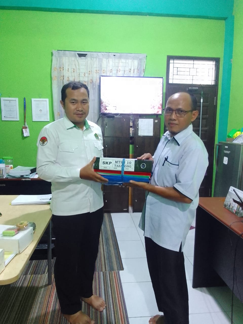 Berkas penting ini diwakili langsung oleh H. M. Kamtari, S.S., selaku Kepala Tata Usaha (KTU) MTsN 10 Tabalong. Beliau ditugaskan langsung oleh Kepala Madrasah, untuk melaksanakan serah terima dokumen tersebut kepada pihak Kemenag Tabalong.