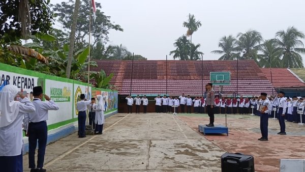 Kapolsek Jaro, Iptu Adi Lesmono, yang bertindak sebagai pembina upacara, menyampaikan amanat yang berisi pesan-pesan penting mengenai bahaya bullying dan pentingnya disiplin dalam berlalu lintas.