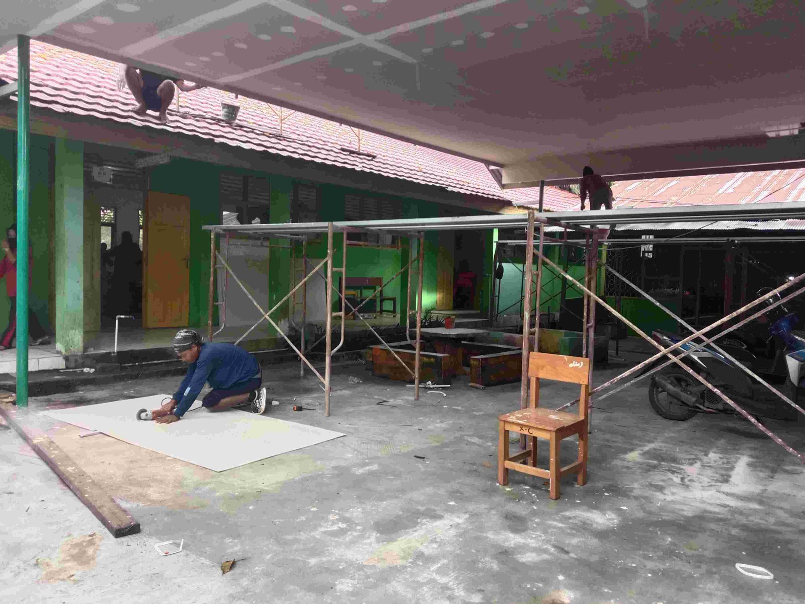 Pekerjaan pemasangan kanopi dilaksanakan oleh tenaga bangunan profesional dan turut dibantu oleh Ardiansyah, staf Tata Usaha MAN 1 Tabalong. Dengan adanya kanopi tersebut, area kantin kini lebih terlindungi dari hujan dan sinar matahari langsung, sehingga dapat dimanfaatkan secara optimal sebagai ruang istirahat dan interaksi antarsiswa.