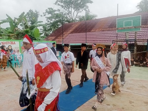 MTsN 6 Tabalong - Dalam rangka memeriahkan HUT Kemerdekaan RI ke-80, OSIM MTsN 6 Tabalong menyelenggarakan lomba fashion show pada Jumat (22/8/25) di halaman utama madrasah dengan mengangkat tema “Pahlawan Nasional”. Lomba yang digelar secara berpasangan ini diikuti oleh perwakilan dari seluruh kelas VII hingga IX.