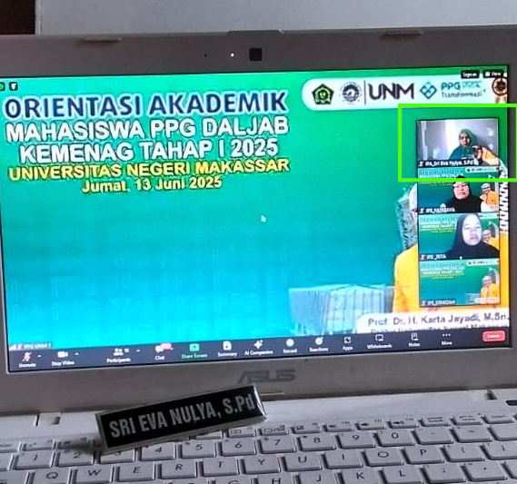 Pada Jumat (13/06/2025), melalui Ruang Virtual Zoom Meeting, guru MTsN 10 Tabalong ini mengikuti Orientasi Akademik PPG. Acara dibuka secara khidmat oleh Rektor UNM dan Direktur Jenderal Guru Tenaga Kependidikan dan Pendidikan Guru Kementerian Pendidikan Dasar dan Menengah RI, Prof. Dr. Nunuk Suryani, M.Pd. Setelah seremoni pembukaan, sesi berlanjut ke pemaparan materi akademik esensial. Materi yang disampaikan meliputi orientasi umum program PPG, struktur kurikulum, penggunaan aplikasi pembelajaran, serta mekanisme administrasi dan pelaporan. Disampaikan para dosen ahli, pembekalan ini bertujuan membekali guru madrasah meningkatkan profesionalismenya.