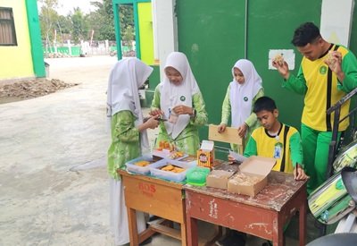 Tanjung (MTsN 4 Tabalong) - Guna menumbuhkan jiwa berwirausaha sejak dini, Organisasi Siswa Intra Madrasah (OSIM) Madrasah Tsanawiyah Negeri (MTsN) 4 Tabalong menjalankan program Usaha Mikro, Kecil dan Menengah (UMKM), Jum’at (08/08/25) di halaman MTsN 4 Tabalong.
