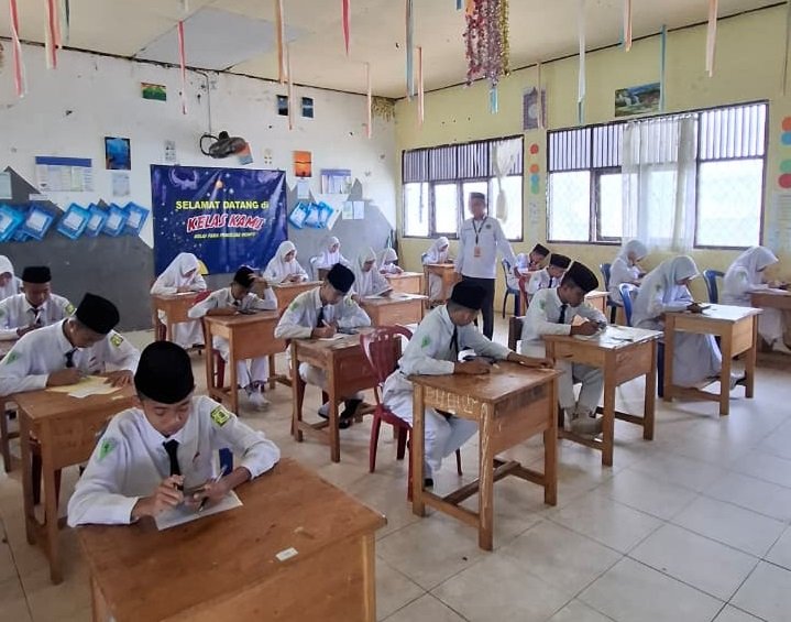 MTsN 10 Tabalong – Pelaksanaan Asesmen Sumatif Akhir Semester (ASAS) Tahun Ajaran 2025/2026 di MTsN 10 Tabalong memasuki hari keenam pada Senin (01/12/2025). Pada sesi ini, seluruh peserta didik mengikuti ujian mata pelajaran PPKn dan Akidah Akhlak dengan metode semi digital, yakni soal berbentuk PDF dan jawaban ditulis pada lembar kertas. Proses ujian berjalan tertib dan lancar di seluruh ruang kelas.