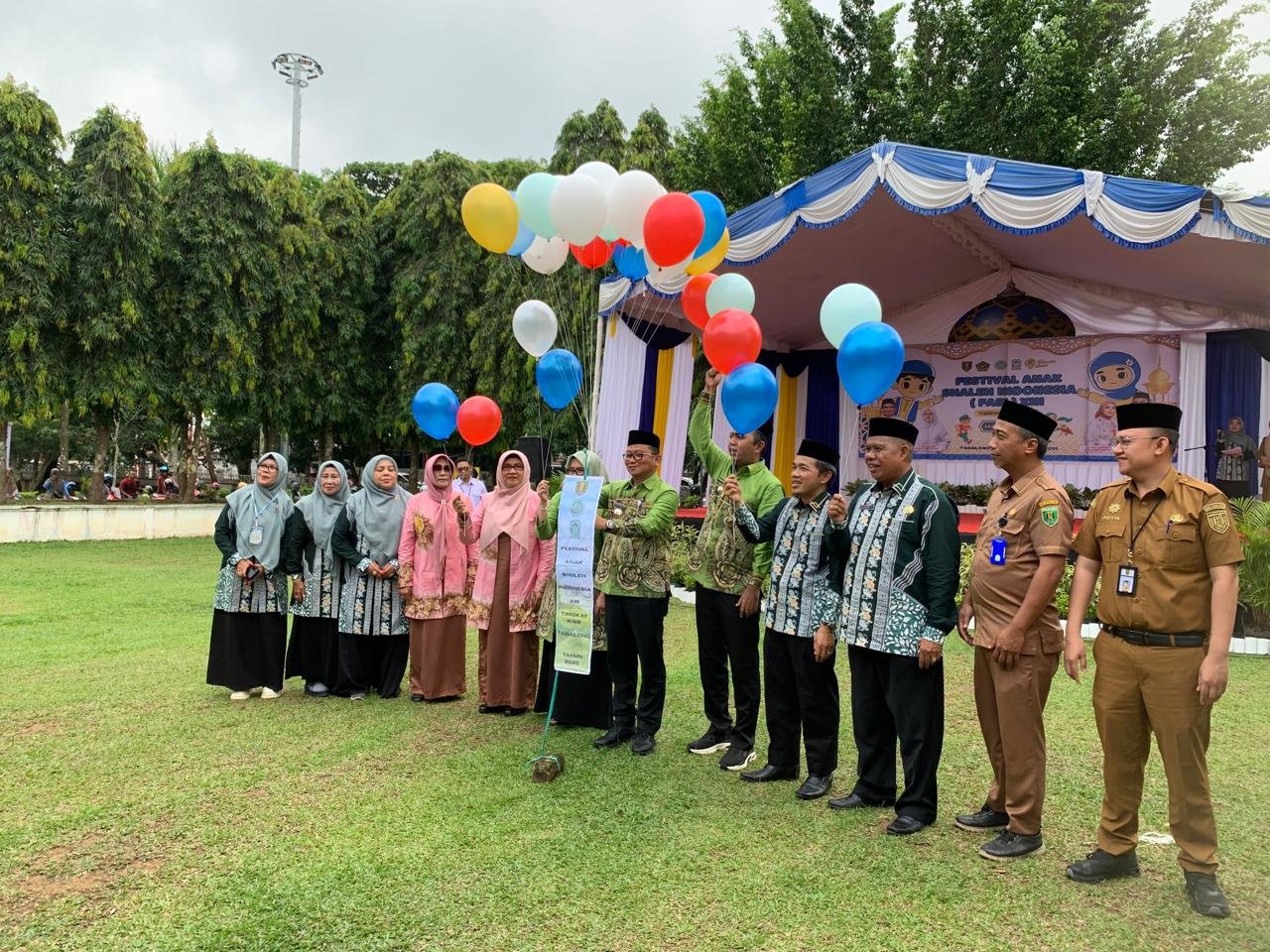 Tanjung (Kemenag Tabalong) - Bupati Tabalong, H. M. Noor Rifani didampingi Wakil Bupati Habib Muhammad Taufani Alkaf secara resmi membuka Festival Anak Shaleh Indonesia (FASI) XIII Tingkat Kabupaten Tabalong dengan melepas balon ke udara yang digelar di halaman Pendopo Bersinar Tanjung, Senin (25/8/25).