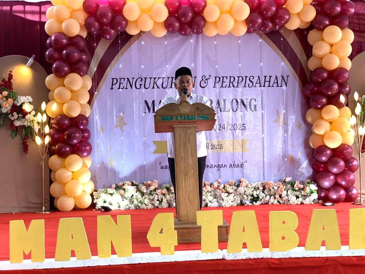 Kepala MAN 4 Tabalong, dalam sambutannya, mengucapkan selamat kepada para lulusan dan berharap mereka tetap menjaga semangat serta tali silaturahmi.