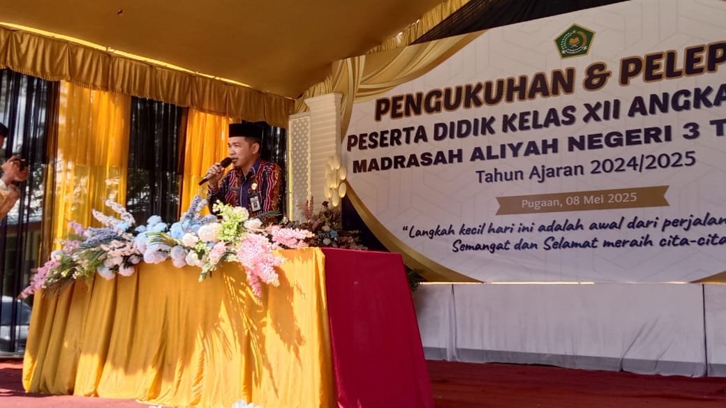 Tanjung (Kemenag Tabalong) – Kepala Kantor Kementerian Agama Kabupaten Tabalong, H. Sahidul Bakhri, S.Ag., M.A., mengingatkan pentingnya peran orang tua dalam membimbing anak-anak mereka setelah lulus dari madrasah. Hal ini disampaikannya saat memberikan sambutan pada acara Pengukuhan dan Perpisahan Siswa/Siswi Kelas XII MAN 3 Tabalong, Rabu (08/05/25).