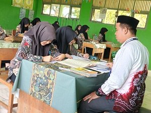 Sahibul menjelaskan literasi Al Qur’an untuk menulis ayat Al-Qur’an dilakukan di rumah masing- masing siswa dan membacanya di madrasah yang dibimbing guru piket harian dengan ketentuan 3 ayat dalam 1 hari.
