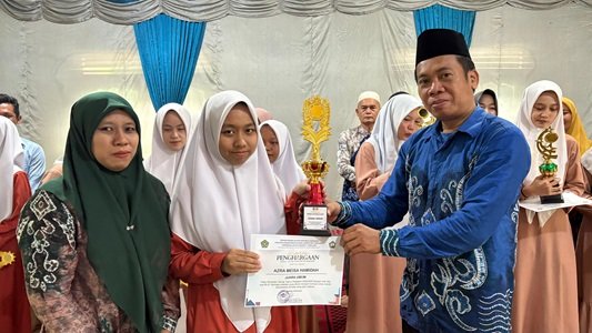 Hidayat mengucapkan selamat saat pemberiaan penhargaan tersebut atas Prestasi Azra Meisa Hamidah sebagai juara umum dari seluruh siswa MAN 4 Tabalong. “Selamat untuk ananda Azra telah mendapatkan juara umum,” ungkap Hidayat.