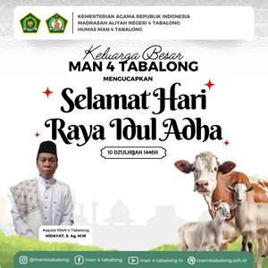 Tanjung ( MAN 4 Tabalong ) – Kepala Madrasah Aliyah Negeri ( MAN ) 4 Tabalong Hidayat, S.Ag.,M.M mengatakan Idul Adha atau hari raya kurban adalah momentum membangkitkan semangat berbagi, mempererat rasa persaudaraan, kemanusiaan serta kepedulian kepada sesama, terutama bagi mereka yang membutuhkan.