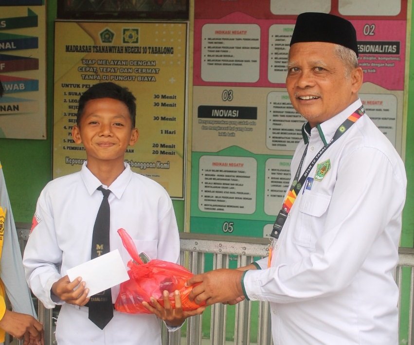 MTsN 10 Tabalong – Madrasah Tsanawiyah Negeri (MTsN) 10 Tabalong kembali menunjukkan komitmen sosialnya dengan menggelar kegiatan amal. Sebagai bagian dari perayaan dan peringatan Maulid Nabi Muhammad SAW, madrasah menyalurkan bantuan berupa paket sembako dan uang tunai kepada lima siswa yang dinilai layak menerima. Kegiatan mulia ini berlangsung pada Selasa (26/8/25), menjadi wujud nyata kepedulian yang diajarkan dalam Islam.