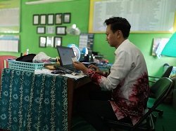 Tanjung (MAN 3 Tabalong) - Operator Madrasah Aliyah Negeri (MAN) 3 Tabalong Muhammad Aldi, melaksanakan pembaruan data Penanggung Jawab (PIC) Program Indonesia Pintar (PIP) secara valid di sistem EMIS., Sabtu (26/04/25) di ruang tata usaha madrasah.
