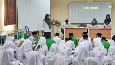Tanjung (MTsN 4 Tabalong) – Pembina Palang Merah Remaja (PMR) Madrasah Tsanawiyah Negeri (MTsN) 4 Tabalong melakukan seleksi calon anggota baru, Senin (11/08/25) di Aula madrasah.