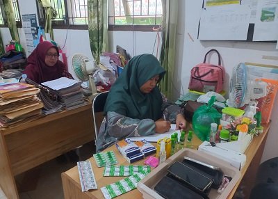 Tanjung (MTs Ar Raudlah Tanta) – Untuk meningkatkan dan memberikan pelayanan dengan kualitas yang baik pembina Usaha Kesehatan Sekolah (UKS) MTs Ar Raudlah Tanta Eka Novita Sari, S.Pd melakukan pengecekan dan penggantian obat yang tersedia.